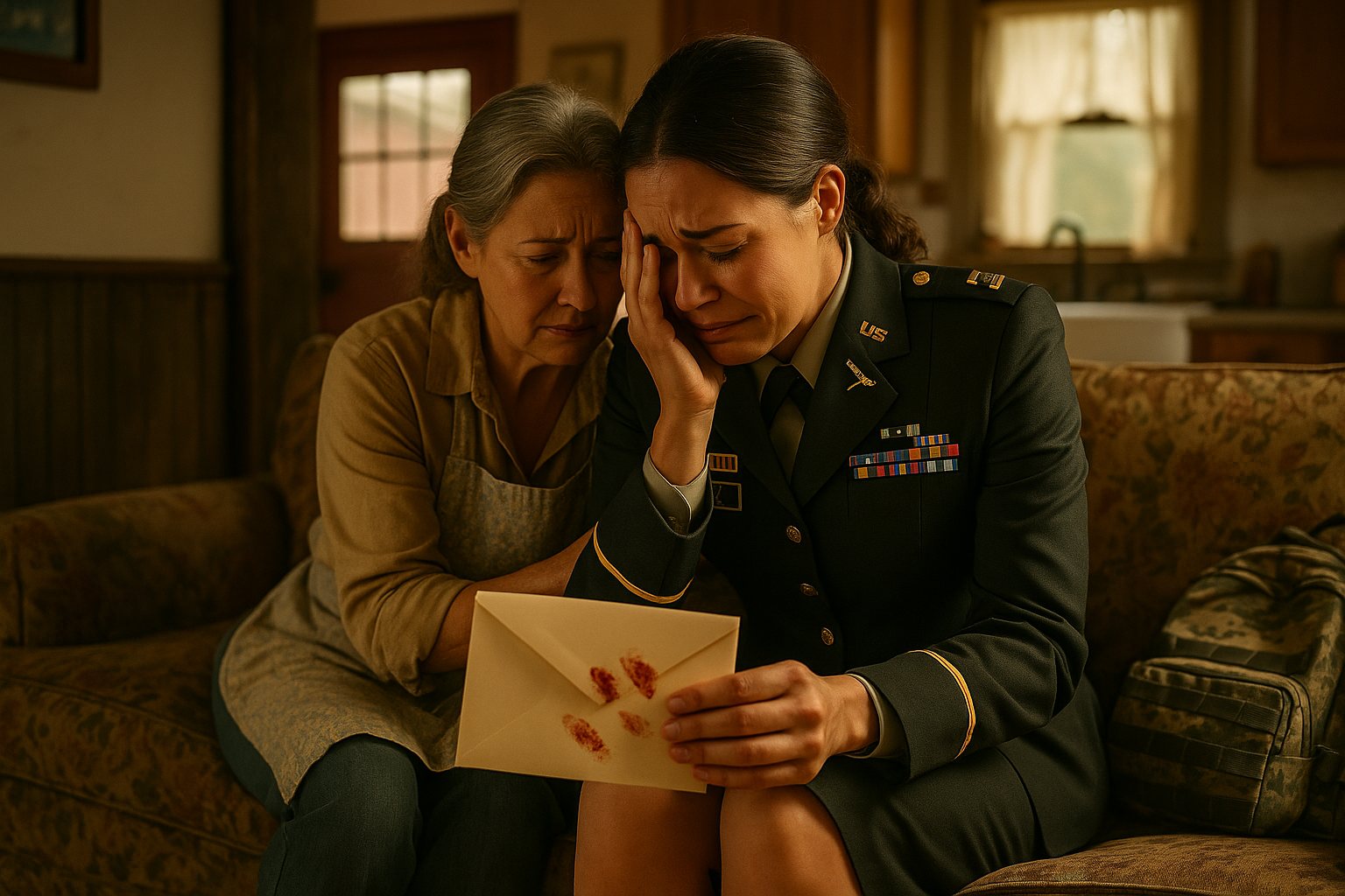 mission of her own — to deliver the blood-stained letter a wounded Marine pressed into her hands in Afghanistan. Dressed in full uniform, she travels to a modest farmhouse in Kansas where the soldier’s mother, Maxine, greets her with weary grace.
